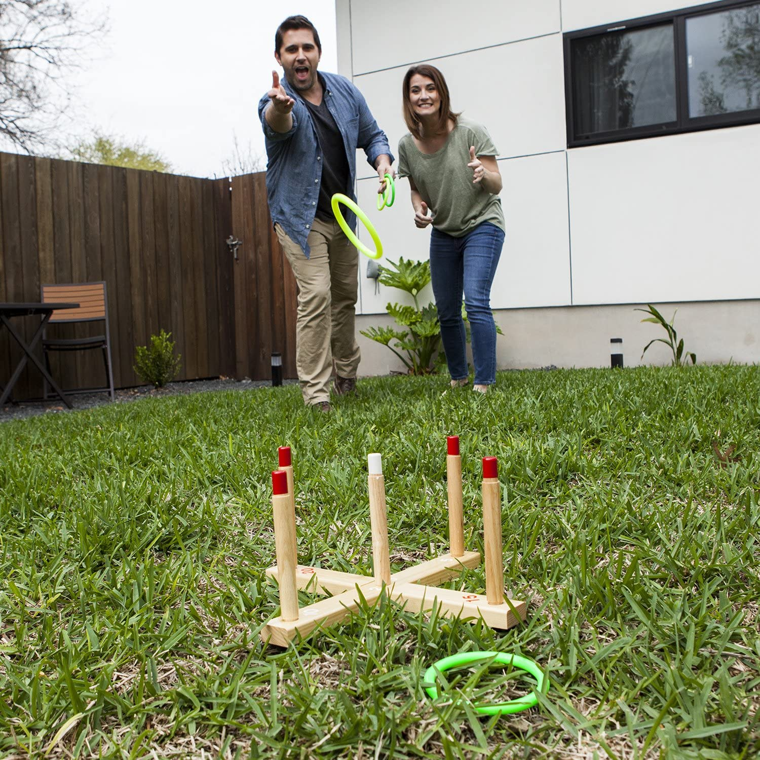 Champion Sports QS1 Wooden Ring Toss Set,Classic
