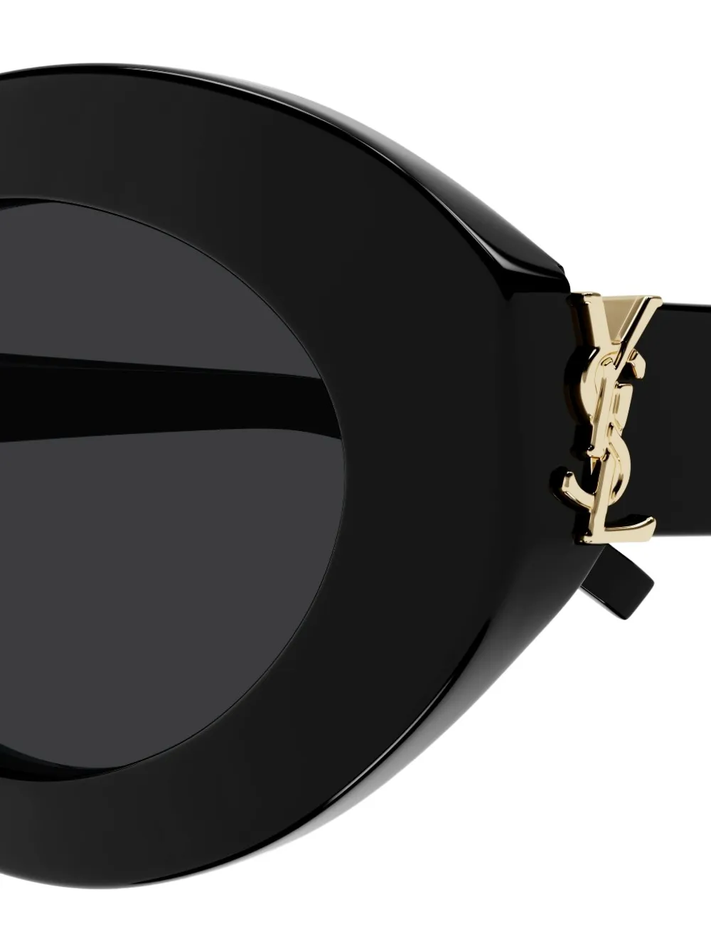 Saint Laurent's sophisticated and timeless appeal is translated into its Eyewear collection. Crafted from black acetate, these sunglasses are characterized by the thick oval silhouette and signature Cassandre plaque at the arms.